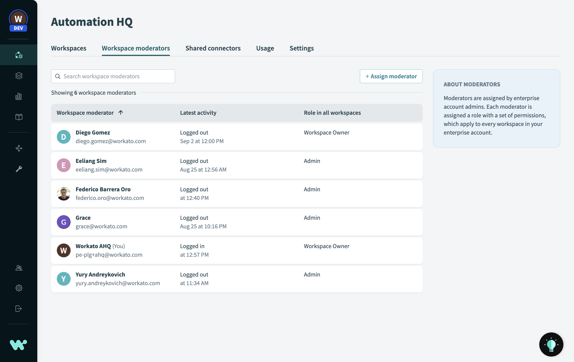 To use the Workspace moderators section of Automation HQ, see these articles: