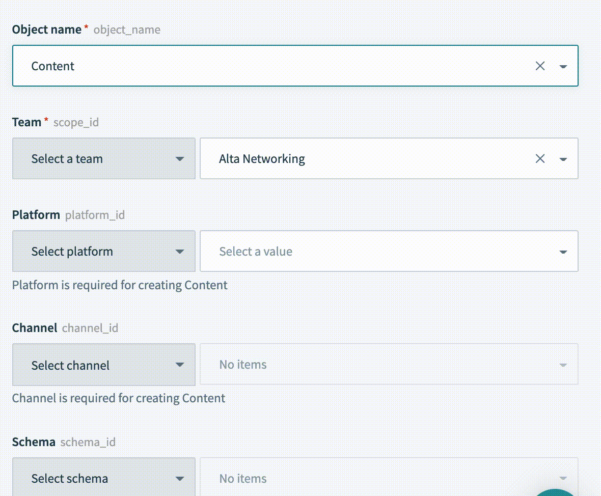hint: 'Platform is required for creating Content'