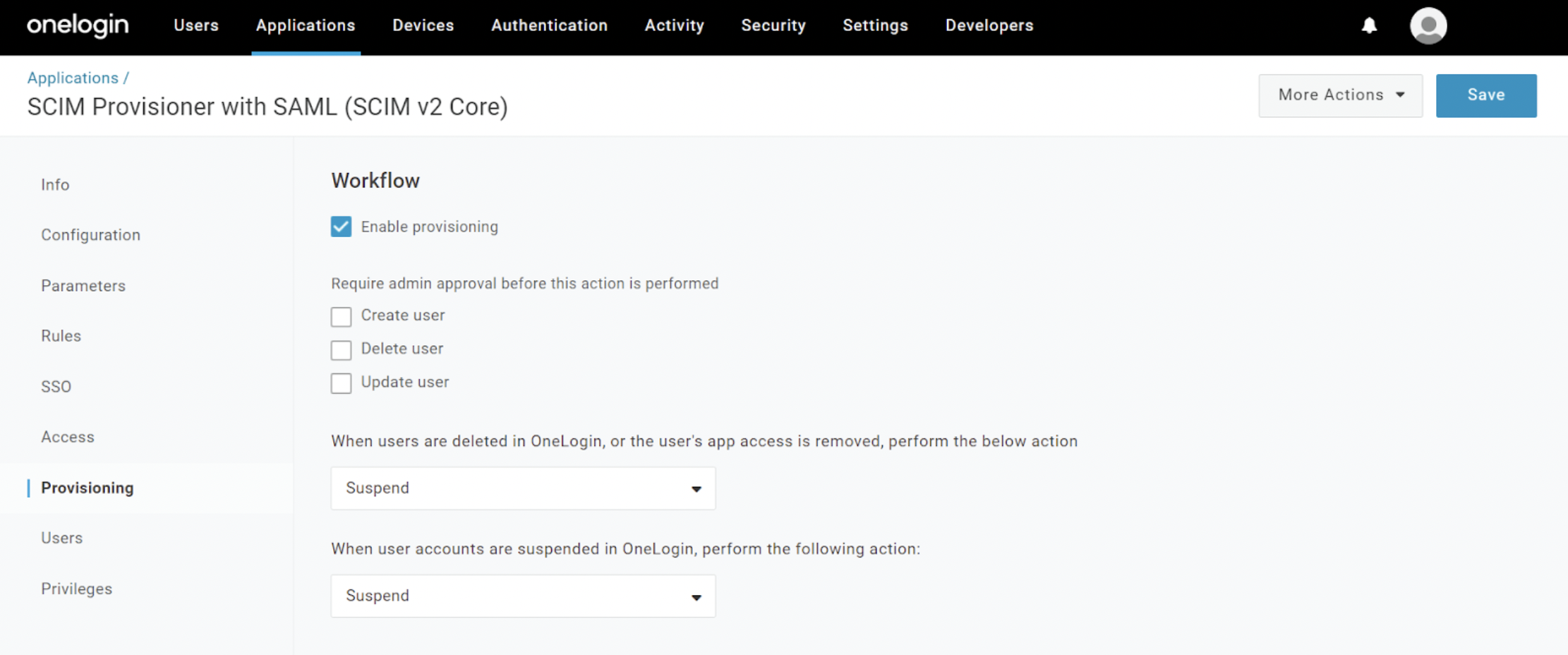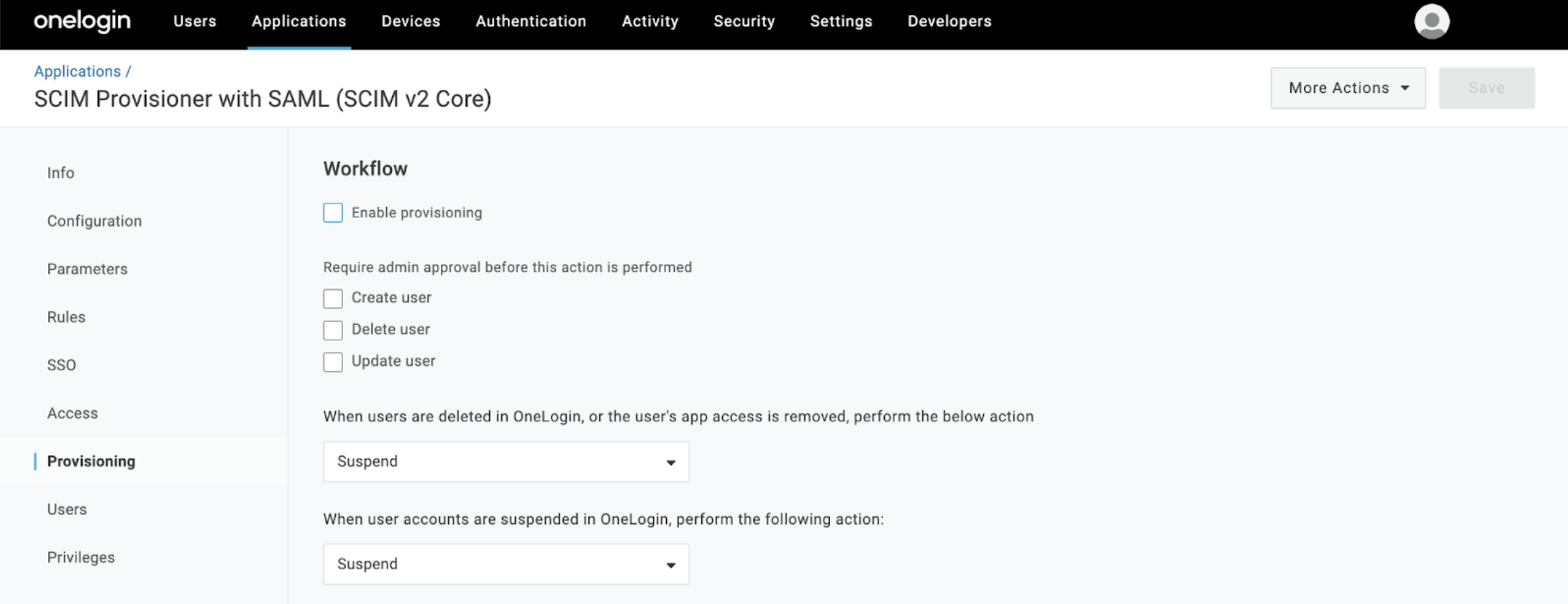 If you are using a generic SAML application without provisioning on OneLogin, you must first add a new application that supports provisioning from the OneLogin app catalog.