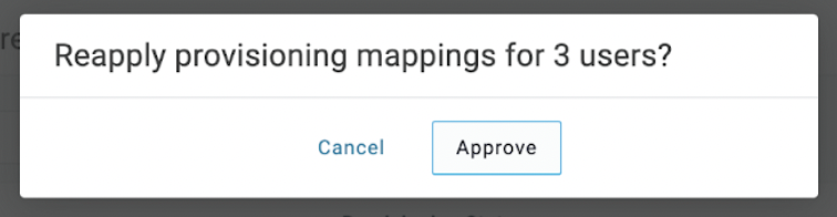 Navigate to Users, select Apply to all, then choose Reapply Mappings, and confirm by clicking Approve.