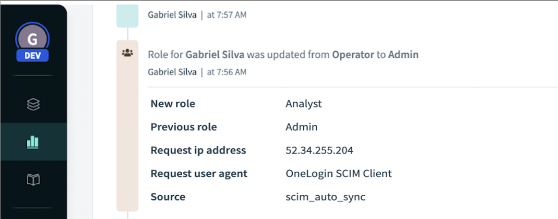 To verify role changes on Workato, you can examine the activity-audit logs dashboard.