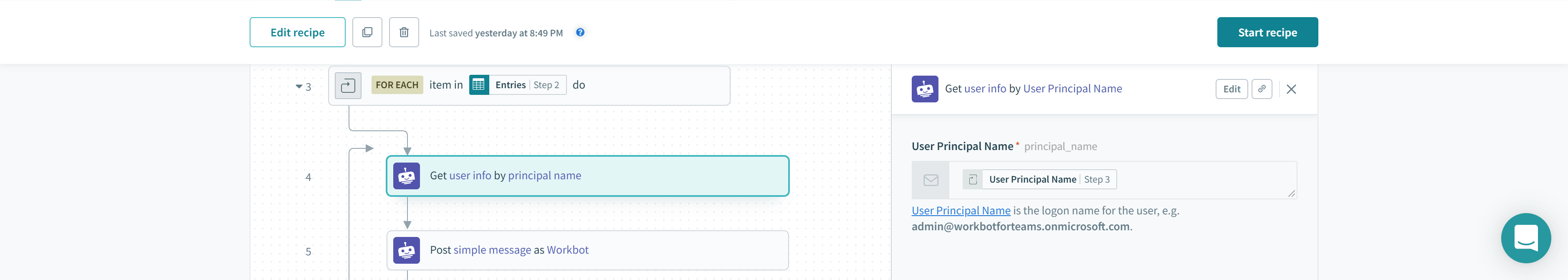 | 1 | Get user ID | Use the action Get user by User Principal Name to obtain the user ID.![]() |