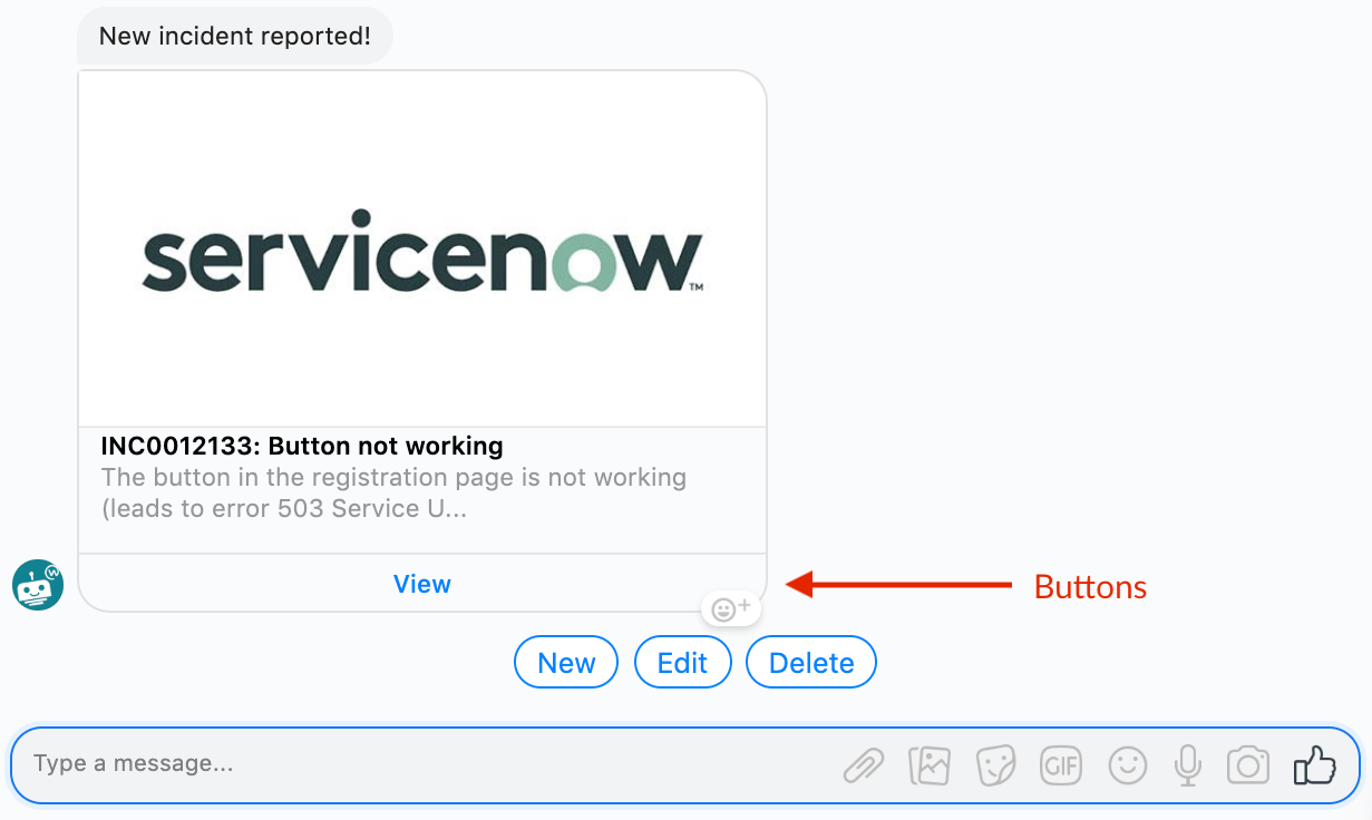 Parameter values can also be passed by buttons and quick reply buttons when they invoke a downstream Workbot command recipe. Typically, you use parameters to pass additional context for downstream Workbot recipe to use.
